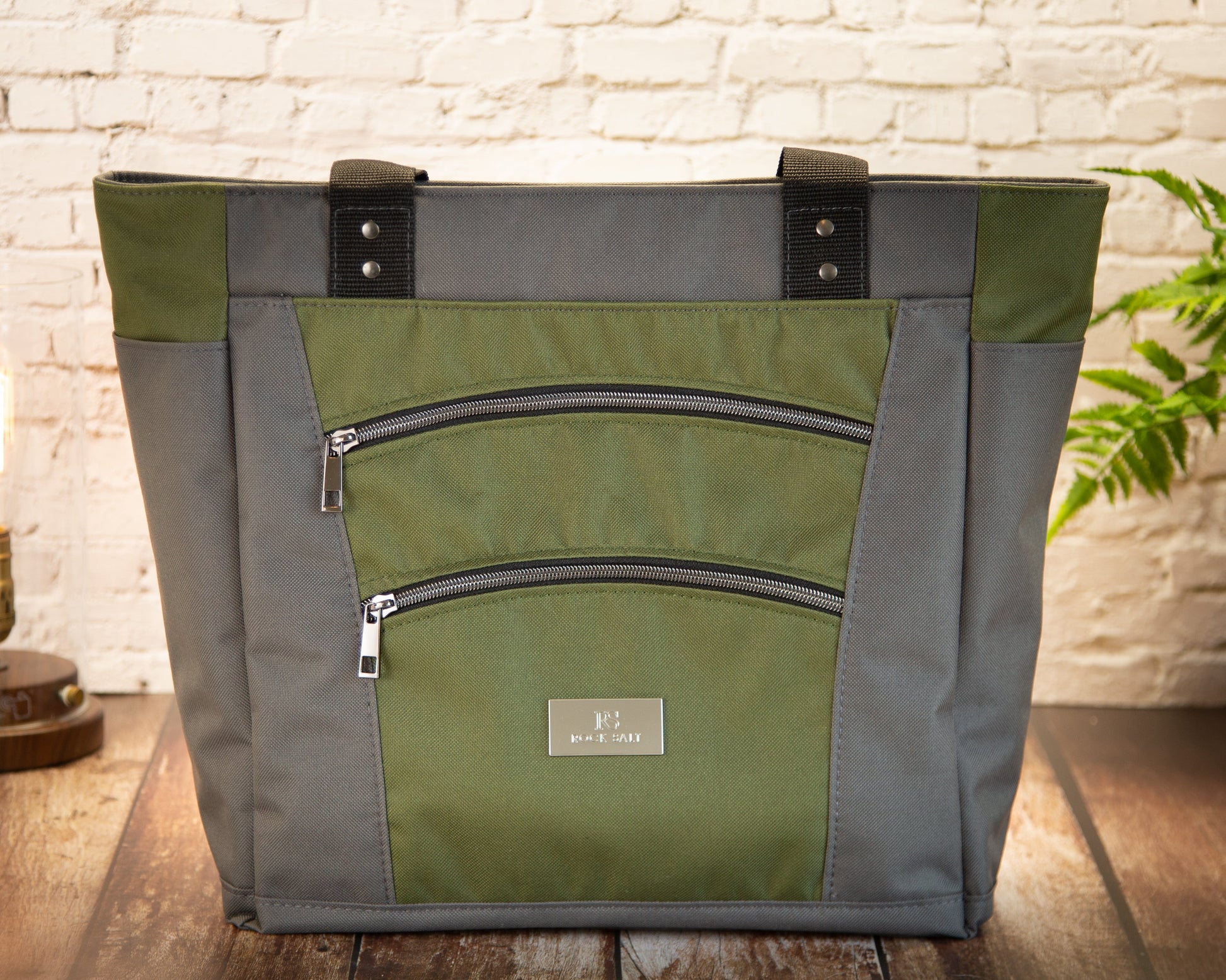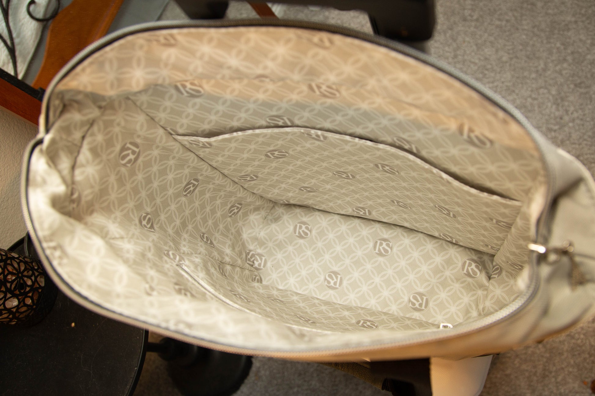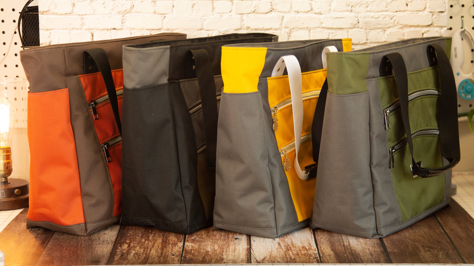 The Islander Travel Tote is designed to fit perfectly on top of a carry-on suit and hold on to it with a trolley sleeve on the back that slips easily over the handles. The trolley sleeve zips closed to serve double duty as a beach/pool bag when you get to your destination especially when made from waterproof canvas, which the pattern suggests.